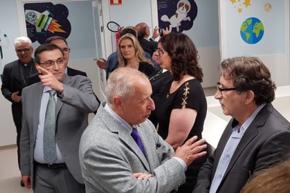 Na foto estamos ouvindo as sempre importantes recomendações do Dr. Nilson L. May, um dos mais destacados líderes do Sistema Nacional Unimed. Vê-se junto, apontando o caminho da visita à entidade inaugurada, o Dr. Carlos Gandara, Cirurgião Pediátrico e Diretor Técnico do Hospital Unimed em Caxias do Sul.