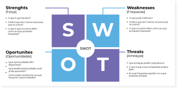 Os pontos fortes e fracos estão dentro da própria empresa, enquanto as oportunidades e as ameaças têm origem externa.